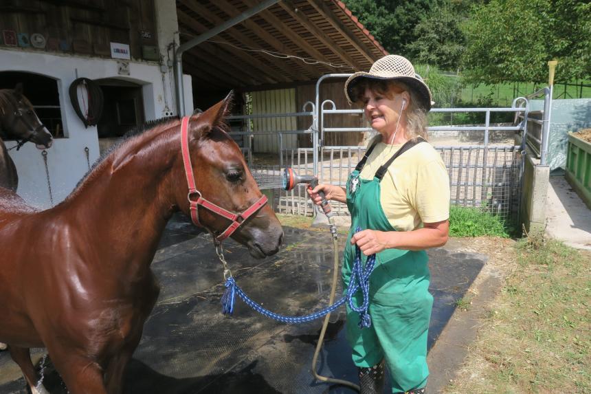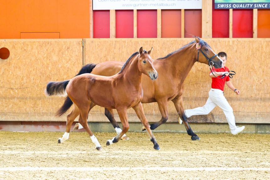 Libelle ist ein sehr zutrauliches Stutfohlen, das klar kommt mit Hund, Elektrozaun, Gartenschlauchdusche, Transporter, vorübergehendem Alleinsein usw. Die Punktierung an der Fohlenschau in Aarau zeigte mit den Noten 7/7/7 gute, ausgeglichene Eigenschaften. Libelle wurde in Gruppen- und Offenstallhaltung aufgezogen. Ein Bild sagt mehr als tausend Worte, vor allem, wenn Sie sich selbst eines machen: Wir freuen uns auf Ihren unverbindlichen Besuch bei uns im Aargau zwecks Besichtigung von Libelle und ihrer Umgebung.