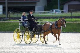 Jolie jument (bai rubican) avec un très bon caractère, douce et facile aux soins. Sûre dans le trafic, part seule ou accompagnée, avec un tempérament équilibré.