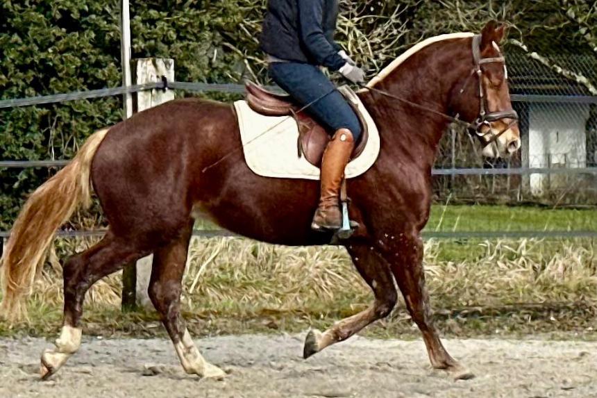 Cheval très chic, polyvalent, docile mais volontaire. Est régulièrement monté par de jeunes cavaliers en extérieur seul ou accompagné. Allures agréables et sportives. Cheval très à l’écoute autant à l’attelage qu’à l’équitation. Un véritable partenaire de famille et de loisirs et de sport.
