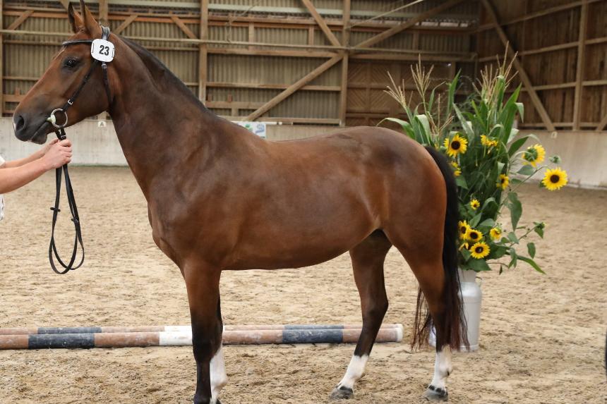 Barina est une très jolie et gentille jument. Elle n'est pas peureuse et est très facile. Elle sort en promenade seule ou en groupe et est à l'aise dans la circulation. C'est un cheval qui conviendra à toute la famille. Barina est portante pour 2026.