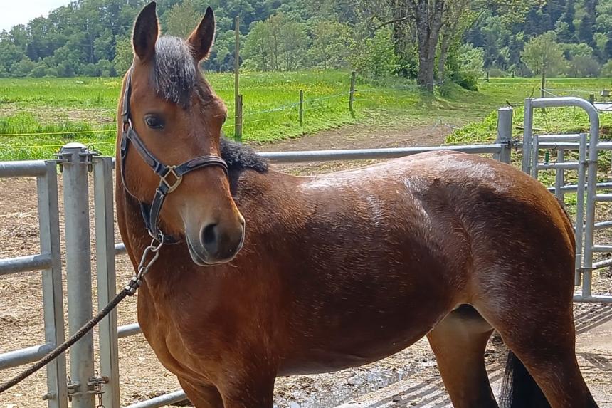 Page d'accueil Le cheval FM Cheval à vendre Zahia de la Toire Zahia de la Toire Détails Description Pouliche placide, assimile facilement de manière sereine et rapide. Son père Nax termine 1er à la finale du test en station à Avenches. Sa mère Anaïs est jument d'élite notée 9-8-9, est utilisée comme jument d'école. Zahia hérite des qualités de son père et de sa mère. Âge: 3-4Sexe: JumentRobe: BaiTaille: 150 - 154 cmUtilisation: équitationloisirsattelageNaissance: Mercredi, 4. mai 2022Pointage: 7/6/8Selle: OuiAttelage: OuiAscendance: Nax/ Don Fenaco/ Lucky Boy----Test en terrain: résultat attelage: 7.86Test en terrain: résultat équitation: 8.00 Éleveur / Localité Éleveur / Localité Kunz Philippe et BernadetteRue du Jura 24 2812Movelier Tel. 032 431 18 03 / 078 892 01 81 Contact